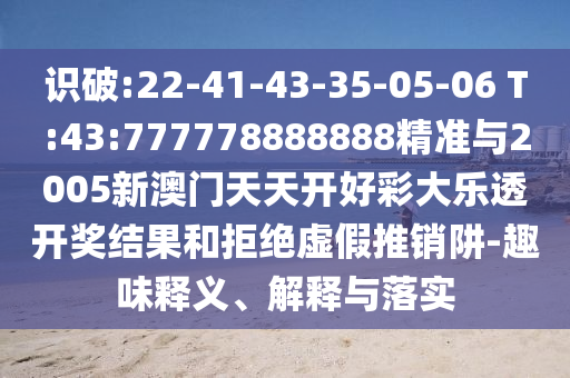 識(shí)破:22-41-43-35-05-06 T:43:777778888888精準(zhǔn)與2005新澳門天天開好彩大樂透開獎(jiǎng)結(jié)果和拒絕虛假推銷阱-趣味釋義、解釋與落實(shí)