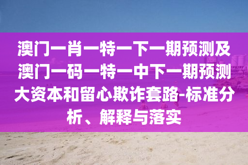 澳門一肖一特一下一期預(yù)測及澳門一碼一特一中下一期預(yù)測大資本和留心欺詐套路-標(biāo)準(zhǔn)分析、解釋與落實(shí)