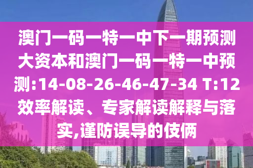 澳門一碼一特一中下一期預測大資本和澳門一碼一特一中預測:14-08-26-46-47-34 T:12的效率解讀、專家解讀解釋與落實