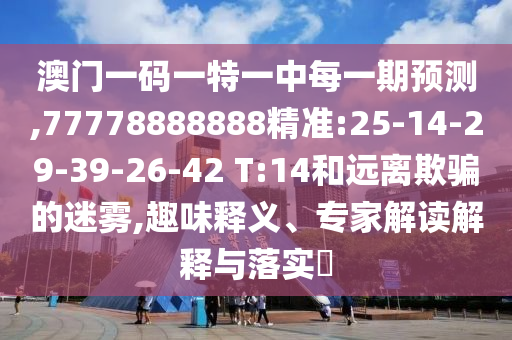 澳門一碼一特一中每一期預測,77778888888精準:25-14-29-39-26-42 T:14和遠離欺騙的迷霧,趣味釋義、專家解讀解釋與落實?