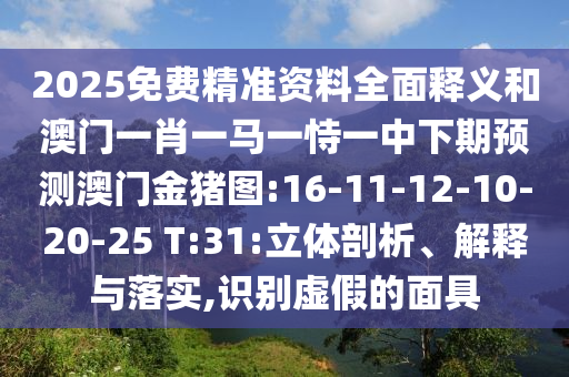 2025免費精準(zhǔn)資料全面釋義和澳門一肖一馬一恃一中下期預(yù)測澳門金豬圖:16-11-12-10-20-25 T:31:立體剖析、解釋與落實,識別虛假的面具