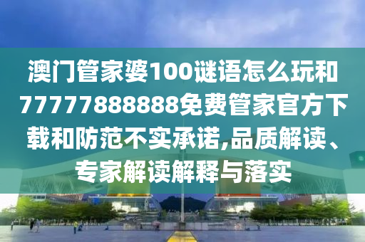澳門管家婆100謎語怎么玩和77777888888免費(fèi)管家官方下載和防范不實(shí)承諾,品質(zhì)解讀、專家解讀解釋與落實(shí)
