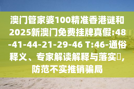 澳門管家婆100精準(zhǔn)香港謎和2025新澳門免費(fèi)掛牌真假:48-41-44-21-29-46 T:46-通俗釋義、專家解讀解釋與落實(shí)?,防范不實(shí)推銷騙局