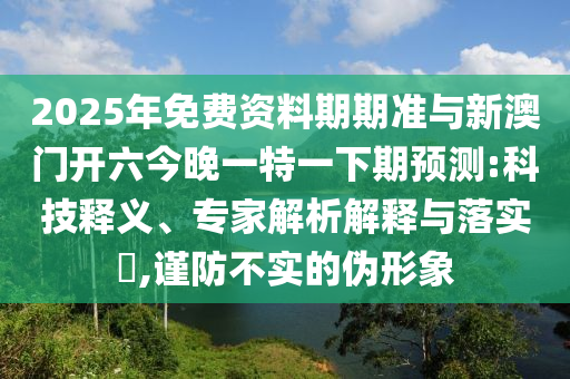 2025年免費資料期期準與新澳門開六今晚一特一下期預測:科技釋義、專家解析解釋與落實?,謹防不實的偽形象