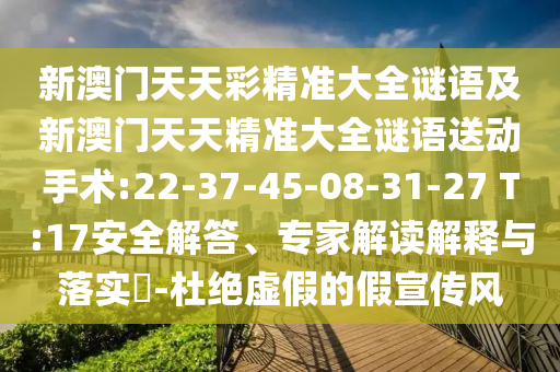 新澳門天天彩精準大全謎語及新澳門天天精準大全謎語送動手術(shù):22-37-45-08-31-27 T:17的安全解答、專家解讀解釋與落實?