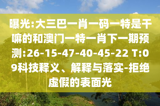 曝光:大三巴一肖一碼一特是干嘛的和澳門(mén)一特一肖下一期預(yù)測(cè):26-15-47-40-45-22 T:09科技釋義、解釋與落實(shí)-拒絕虛假的表面光