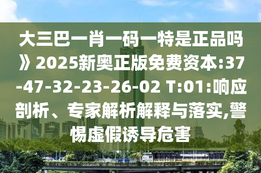 大三巴一肖一碼一特是正品嗎》2025新奧正版免費資本:37-47-32-23-26-02 T:01:響應剖析、專家解析解釋與落實,警惕虛假誘導危害
