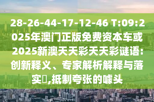 28-26-44-17-12-46 T:09:2025年澳門正版免費(fèi)資本車或2025新澳天天彩天天彩謎語(yǔ):創(chuàng)新釋義、專家解析解釋與落實(shí)?,抵制夸張的噱頭