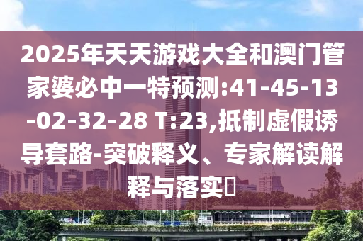 2025年天天游戲大全和澳門管家婆必中一特預(yù)測:41-45-13-02-32-28 T:23,抵制虛假誘導(dǎo)套路-突破釋義、專家解讀解釋與落實?