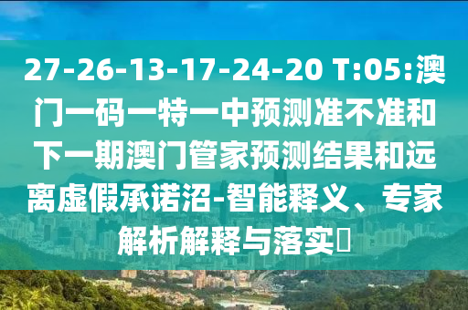 27-26-13-17-24-20 T:05:澳門一碼一特一中預(yù)測準(zhǔn)不準(zhǔn)和下一期澳門管家預(yù)測結(jié)果:智能釋義、專家解析解釋與落實?