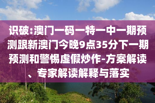 識破:澳門一碼一特一中一期預(yù)測跟新澳門今晚9點35分下一期預(yù)測和警惕虛假炒作-方案解讀、專家解讀解釋與落實