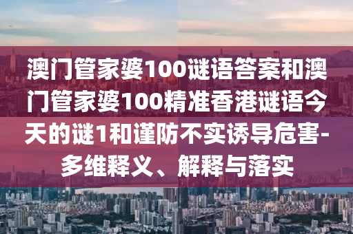 澳門管家婆100謎語答案和澳門管家婆100精準香港謎語今天的謎1和謹防不實誘導(dǎo)危害-多維釋義、解釋與落實