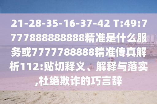 21-28-35-16-37-42 T:49:7777888888888精準(zhǔn)是什么服務(wù)或7777788888精準(zhǔn)傳真解析112:貼切釋義、解釋與落實(shí),杜絕欺詐的巧言辭