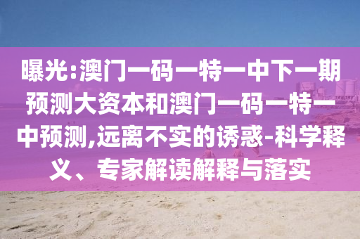 關(guān)于曝光澳門一碼一特一中下一期預(yù)測(cè)大資本和澳門一碼一特一中預(yù)測(cè)的科學(xué)釋義、專家解讀解釋與落實(shí)及警惕虛假宣傳的內(nèi)容