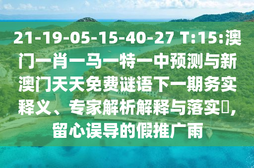 21-19-05-15-40-27 T:15:澳門(mén)一肖一馬一特一中預(yù)測(cè)與新澳門(mén)天天免費(fèi)謎語(yǔ)下一期:務(wù)實(shí)釋義、專(zhuān)家解析解釋與落實(shí)?