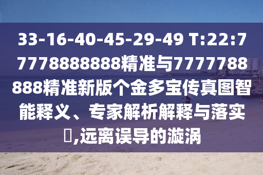 33-16-40-45-29-49 T:22:77778888888精準(zhǔn)與7777788888精準(zhǔn)新版?zhèn)€金多寶傳真圖智能釋義、專家解析解釋與落實(shí)?,遠(yuǎn)離誤導(dǎo)的漩渦