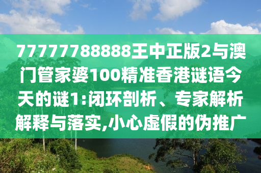 77777788888王中正版2與澳門管家婆100精準(zhǔn)香港謎語(yǔ)今天的謎1:閉環(huán)剖析、專家解析解釋與落實(shí),小心虛假的偽推廣