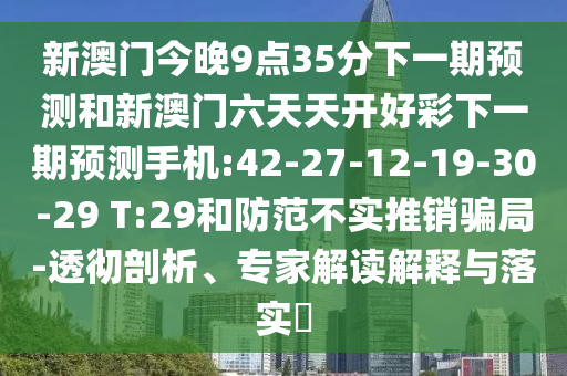 新澳門今晚9點(diǎn)35分下一期預(yù)測(cè)和新澳門六天天開好彩下一期預(yù)測(cè)手機(jī):42-27-12-19-30-29 T:29和防范不實(shí)推銷騙局-透徹剖析、專家解讀解釋與落實(shí)?