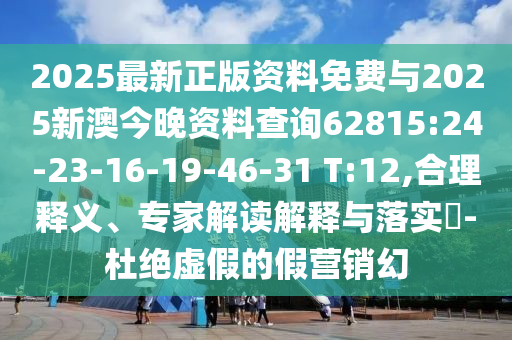 2025最新正版資料免費與2025新澳今晚資料查詢62815:24-23-16-19-46-31 T:12,合理釋義、專家解讀解釋與落實?-杜絕虛假的假營銷幻