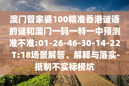 澳門管家婆100精準(zhǔn)香港謎語的謎和澳門一碼一特一中預(yù)測(cè)準(zhǔn)不準(zhǔn):01-26-46-30-14-22 T:18場(chǎng)景解答、解釋與落實(shí)-抵制不實(shí)標(biāo)榜坑
