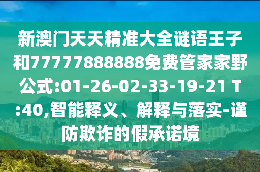 關(guān)于關(guān)鍵詞“新澳門天天精準大全謎語王子”、“77777888888免費管家家野公式: 01-26-02-33-19-21”以及“謹防欺詐的假承諾境”的智能釋義、解釋與落實,以下是對這些關(guān)鍵詞的全面釋義和解釋,并提醒公眾警惕虛假宣傳。