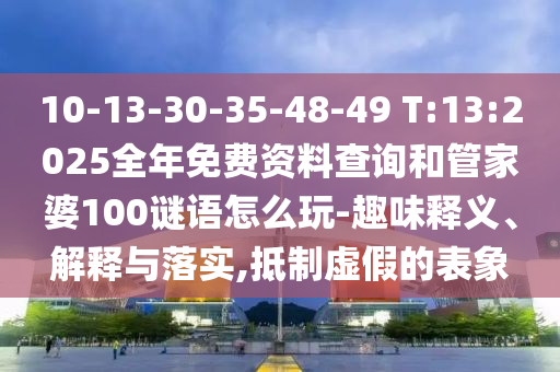 10-13-30-35-48-49 T:13:2025全年免費資料查詢和管家婆100謎語怎么玩-趣味釋義、解釋與落實,抵制虛假的表象