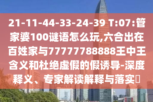21-11-44-33-24-39 T:07:管家婆100謎語怎么玩,六合出在百姓家與77777788888王中王”的深度釋義、專家解讀與落實(shí),以及警惕虛假宣傳的內(nèi)容