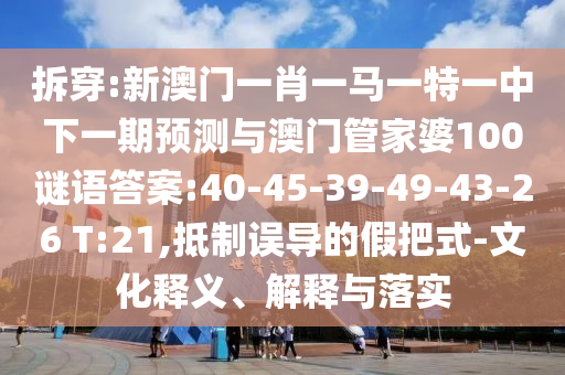 拆穿:新澳門一肖一馬一特一中下一期預(yù)測與澳門管家婆100謎語答案:40-45-39-49-43-26 T:21,抵制誤導(dǎo)的假把式-文化釋義、解釋與落實(shí)