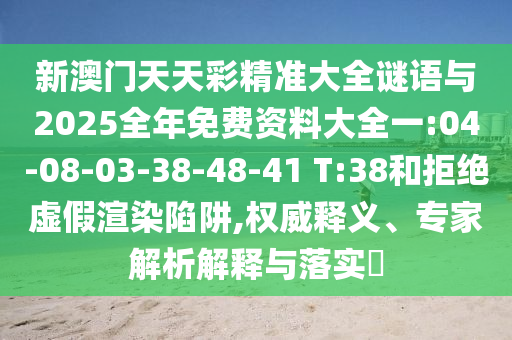 新澳門天天彩精準大全謎語與2025全年免費資料大全一:04-08-03-38-48-41 T:38和拒絕虛假渲染陷阱,權威釋義、專家解析解釋與落實?