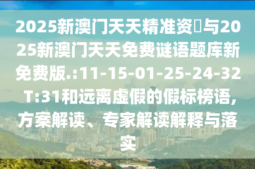 2025新澳門天天精準(zhǔn)資枓與2025新澳門天天免費(fèi)謎語題庫新免費(fèi)版.:11-15-01-25-24-32 T:31的方案解讀、專家解讀解釋與落實(shí)