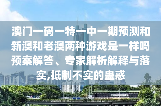 澳門一碼一特一中一期預(yù)測和新澳和老澳兩種游戲是一樣嗎預(yù)案解答、專家解析解釋與落實(shí),抵制不實(shí)的蠱惑