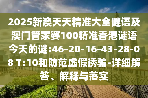 2025新澳天天精準大全謎語及澳門管家婆100精準香港謎語今天的謎:46-20-16-43-28-08 T:10和防范虛假誘騙-詳細解答、解釋與落實