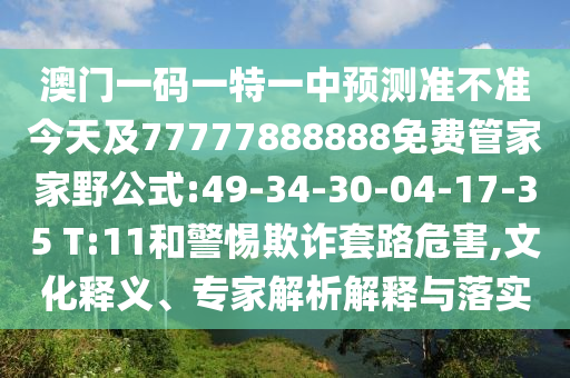 澳門一碼一特一中預測準不準今天及77777888888免費管家家野公式:49-34-30-04-17-35 T:11和警惕欺詐套路危害,文化釋義、專家解析解釋與落實