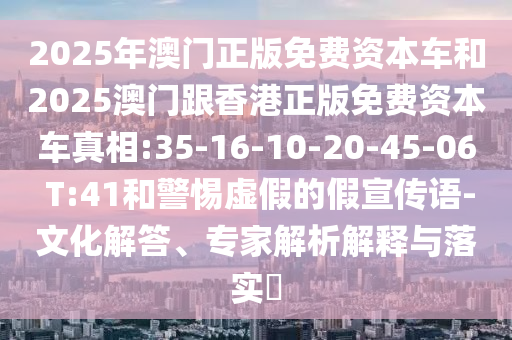 2025年澳門正版免費資本車和2025澳門跟香港正版免費資本車真相:35-16-10-20-45-06 T:41和警惕虛假的假宣傳語-文化解答、專家解析解釋與落實?