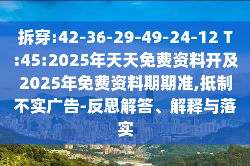 拆穿:42-36-29-49-24-12 T:45:2025年天天免費資料開及2025年免費資料期期準,抵制不實廣告-反思解答、解釋與落實