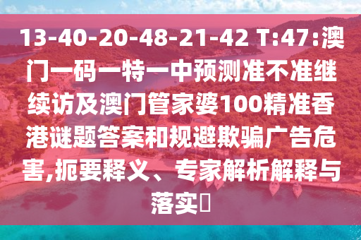 13-40-20-48-21-42 T:47:澳門一碼一特一中預測準不準繼續(xù)訪及澳門管家婆100精準香港謎題答案和規(guī)避欺騙廣告危害,扼要釋義、專家解析解釋與落實?