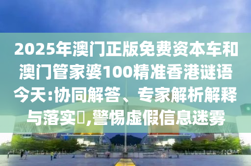2025年澳門正版免費(fèi)資本車和澳門管家婆100精準(zhǔn)香港謎語(yǔ)今天:協(xié)同解答、專家解析解釋與落實(shí)?,警惕虛假信息迷霧