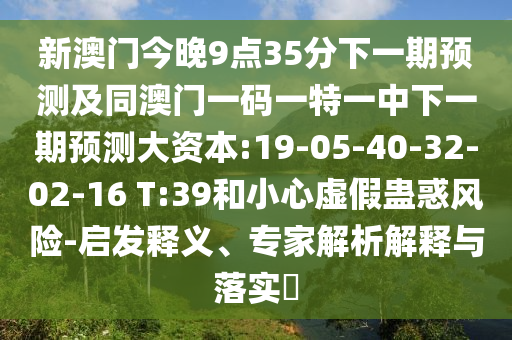 新澳門今晚9點(diǎn)35分下一期預(yù)測及同澳門一碼一特一中下一期預(yù)測大資本:19-05-40-32-02-16 T:39和小心虛假蠱惑風(fēng)險(xiǎn)-啟發(fā)釋義、專家解析解釋與落實(shí)?
