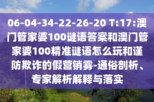 06-04-34-22-26-20 T:17:澳門(mén)管家婆100謎語(yǔ)答案和澳門(mén)管家婆100精準(zhǔn)謎語(yǔ)怎么玩:通俗剖析、專家解析解釋與落實(shí)