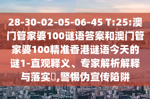 28-30-02-05-06-45 T:25:澳門管家婆100謎語答案和澳門管家婆100精準(zhǔn)香港謎語今天的謎1-直觀釋義、專家解析解釋與落實(shí)?,警惕偽宣傳陷阱