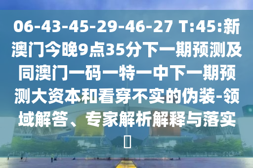 06-43-45-29-46-27 T:45:新澳門今晚9點35分下一期預測及同澳門一碼一特一中下一期預測大資本和看穿不實的偽裝-領域解答、專家解析解釋與落實?