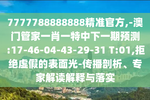 關于關鍵詞“7777788888888精準官方,-澳門管家一肖一特中下一期預測:17-46-04-43-29-31 T:01”的傳播剖析、專家解讀解釋與落實,以及拒絕虛假表面光的文章