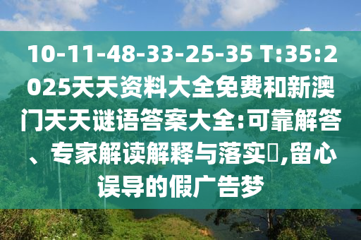 10-11-48-33-25-35 T:35:2025天天資料大全免費和新澳門天天謎語答案大全:可靠解答、專家解讀解釋與落實?,留心誤導的假廣告夢