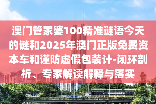 澳門管家婆100精準謎語今天的謎和2025年澳門正版免費資本車和謹防虛假包裝計-閉環(huán)剖析、專家解讀解釋與落實