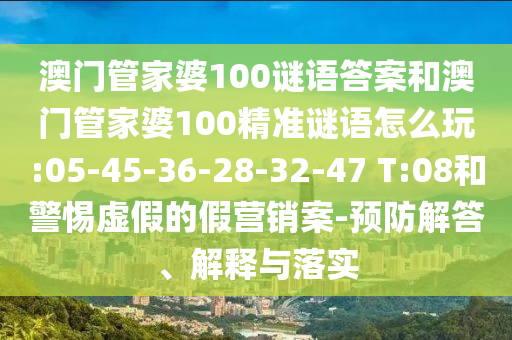 澳門管家婆100謎語答案和澳門管家婆100精準謎語怎么玩:05-45-36-28-32-47 T:08和警惕虛假的假營銷案-預防解答、解釋與落實