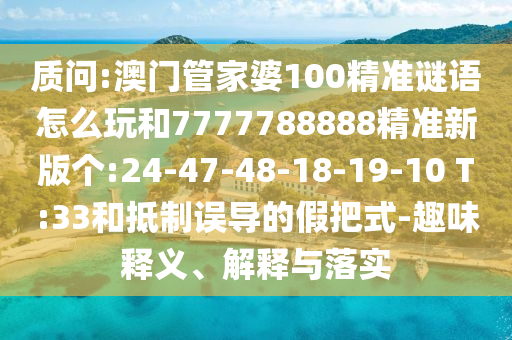 質(zhì)問:澳門管家婆100精準(zhǔn)謎語怎么玩和7777788888精準(zhǔn)新版?zhèn)€:24-47-48-18-19-10 T:33和抵制誤導(dǎo)的假把式-趣味釋義、解釋與落實