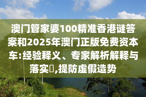 澳門管家婆100精準香港謎答案和2025年澳門正版免費資本車:經驗釋義、專家解析解釋與落實?,提防虛假造勢