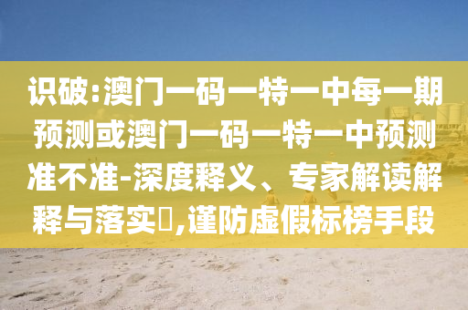 識破:澳門一碼一特一中每一期預(yù)測或澳門一碼一特一中預(yù)測準不準-深度釋義、專家解讀解釋與落實?,謹防虛假標榜手段