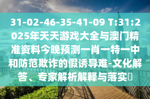 31-02-46-35-41-09 T:31:2025年天天游戲大全與澳門精準(zhǔn)資料今晚預(yù)測一肖一特一中和防范欺詐的假誘導(dǎo)難-文化解答、專家解析解釋與落實(shí)?