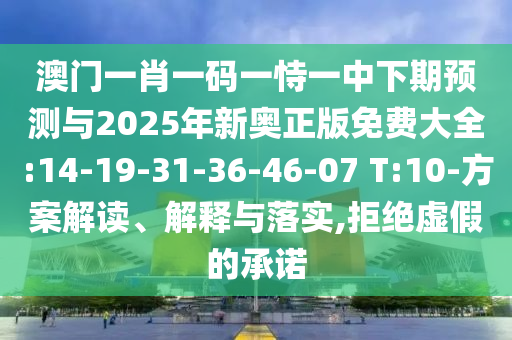 澳門(mén)一肖一碼一恃一中下期預(yù)測(cè)與2025年新奧正版免費(fèi)大全:14-19-31-36-46-07 T:10-方案解讀、解釋與落實(shí),拒絕虛假的承諾